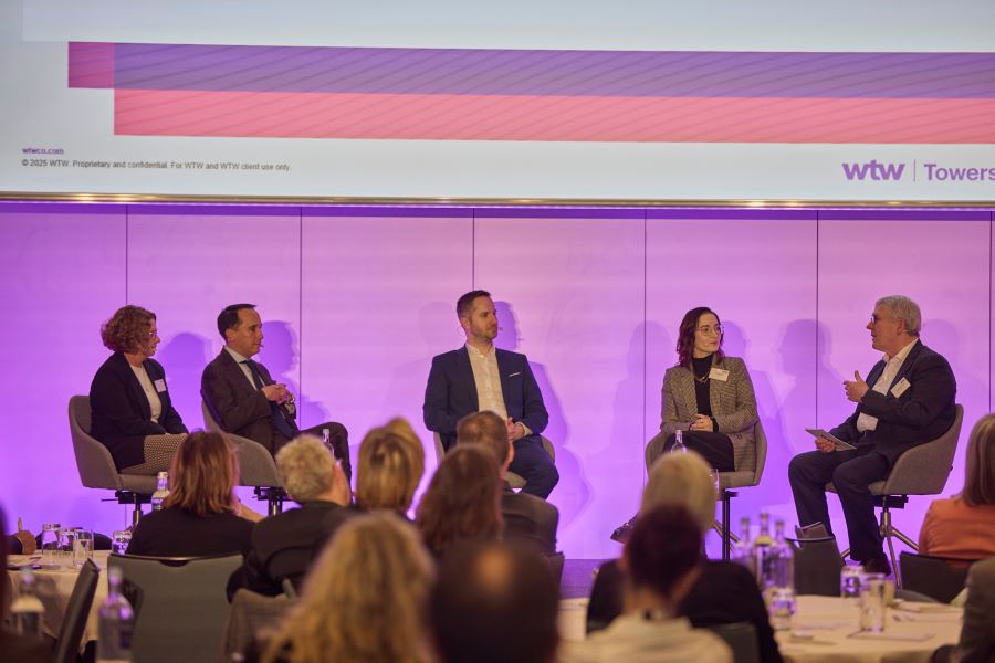 Wie sieht die Unternehmenspraxis aus? Darüber unterhalten haben sich Beate Petry, BASF, Carolin Herzke, Uniper, Hansjörg Müllerleile, MetallRente, und Leon Hahn, WTW; moderiert wurde die Runde von Michael Karst, WTW.