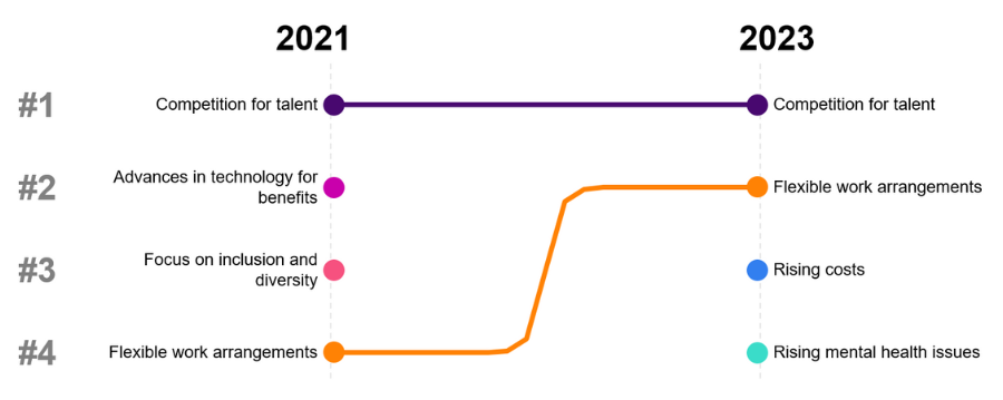 Competition for talent and flexible work arrangements are the key issues influencing benefits strategy