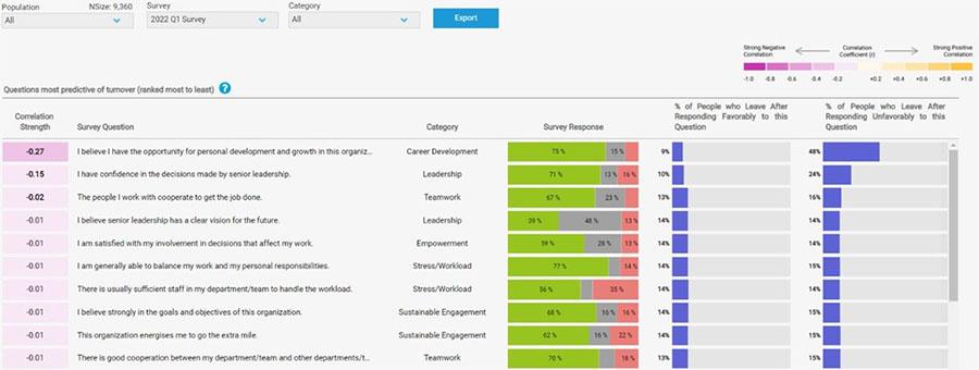 With Advanced Analytics for Engage, go beyond simple descriptive statistics and answer the tough questions keeping you, your leaders and managers up at night with advanced people analytics.