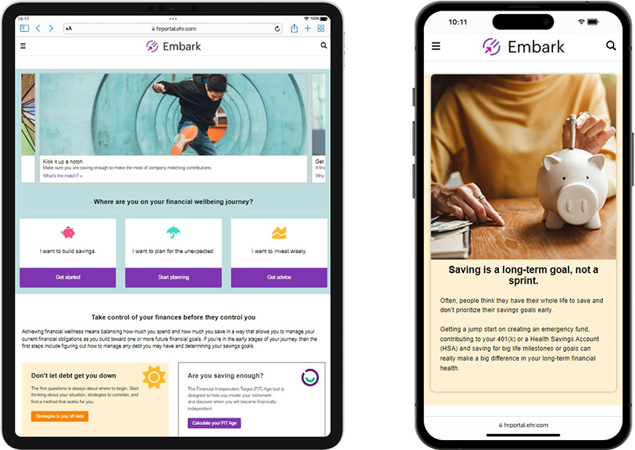 Help employees prepare for the future and improve their financial wellbeing. Deliver education and resources including financial planning tools, guides, and videos to your employees including information about financial wellbeing, retiree health options, transitioning into retirement and more.