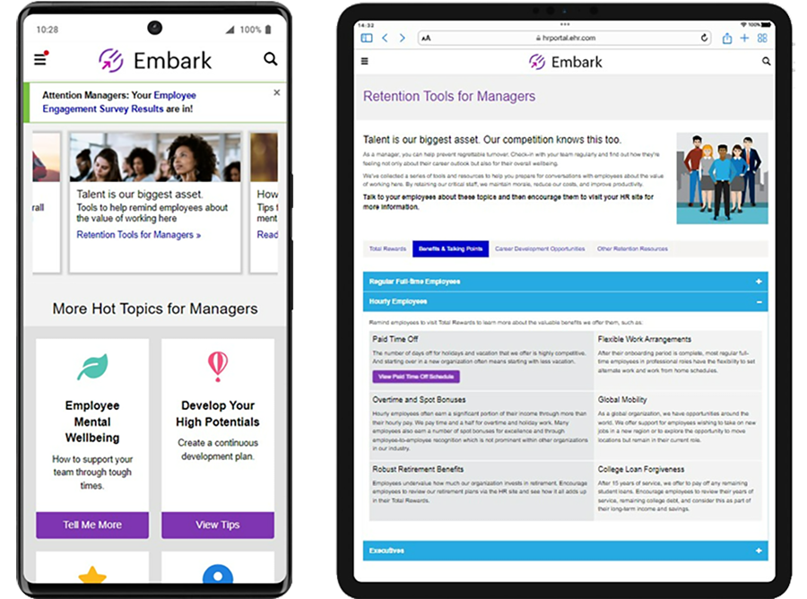 • Bring information to your employees’ fingertips with a mobile app and create an important engagement touchpoint