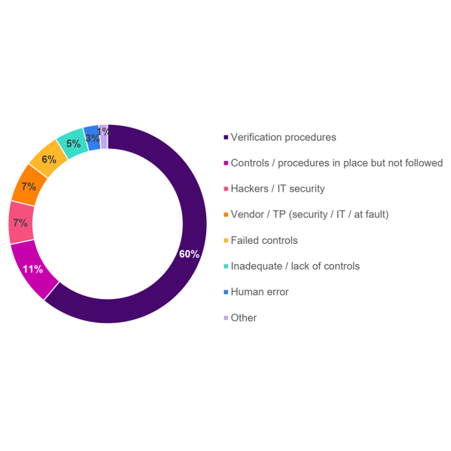 Fraude externo, ingeniería social. Un hacker obtiene acceso al correo de un empleado y le envía instrucciones bancarias falsas. Logra usar el carné de conducir y la firma del empleado como parte del engaño.